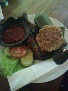 lunch kami hari ini bebas!hoyeah....ini la yg sy nak.boleh pilih sendiri nak makan apa,yg berat ke ringan ke,ikot suka kami je nak pilih.asik makan nasik je,naik sebu da perut kitorang.kami makan di KAMPUNG DAUN tak silap sy la.....tp tempat ni memang cool giler lah!paling best yg sy penah pegi samaada dlm Indonesia ni ataupon Malaysia sekalipon!sebab tempat ni besar gila!macam dlm hutan pon ada.ada banyak tempat makan.setiap station ada dapur diorang sendiri.tak dapat rasanya nak gambarkan.tp ini lah restoran idaman sy!siap ada air terjun semulajadi tau!tempatnya menaik ke bukit....peh,ni kalau sy bukak kat tanah ayah sy kat Gombak tu,memang modal besar gile.tp memang cool beb!